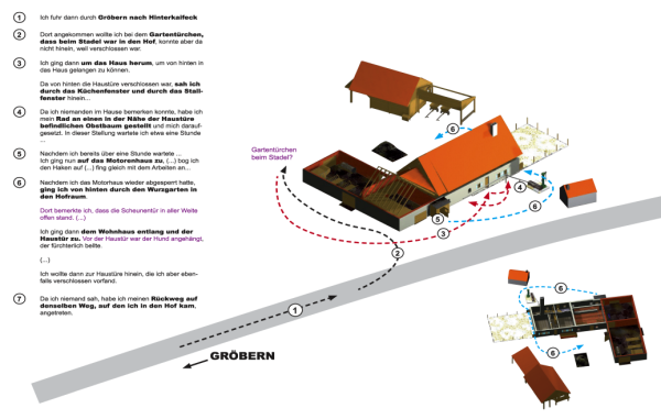 Gregers Töchter begleiten Hofner aufs Feld, wo Greger beschäftigt war. Hofner erzählt auch ihm von der Reparatur in Hinterkaifeck und dass dort keiner der Bewohner zu sehen war [2] [5]
