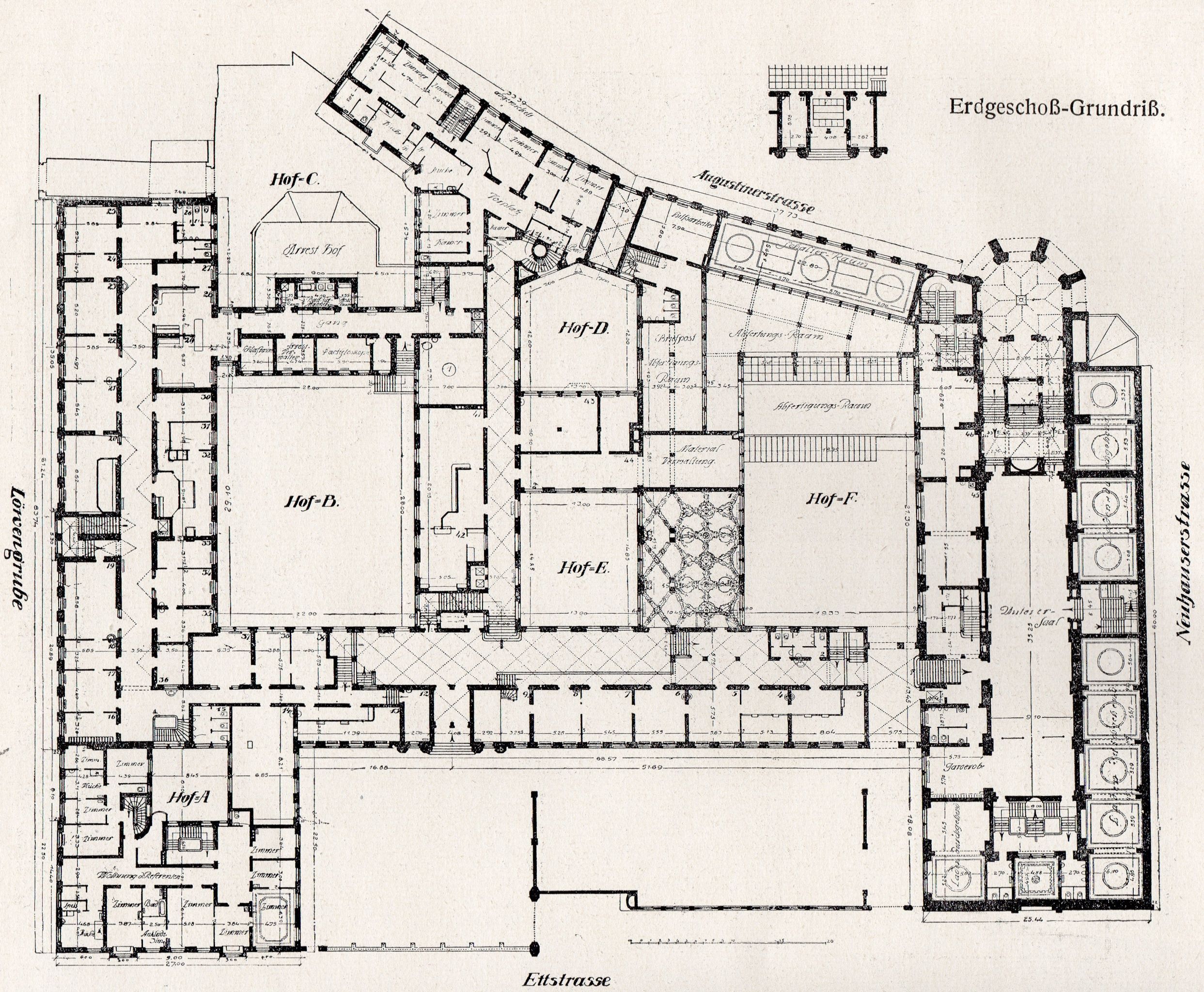 Grundriss Neubau Polizeipräsidium München 1920 "Augustinerstock"